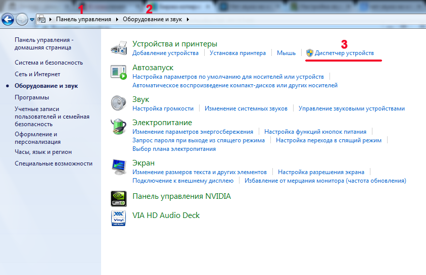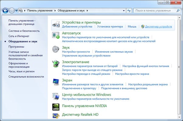 Чтобы приступить к выполнению пункта» Настройка звука в Windows 7″, необходимо сначала определить основную проблему. Чтобы проверить звуковую карту, просто зайдите в пункт «Пуск», найдите в нем «Панель управления», а затем перейдите в раздел «Система и безопасность». И нажмите на Диспетчер устройств.