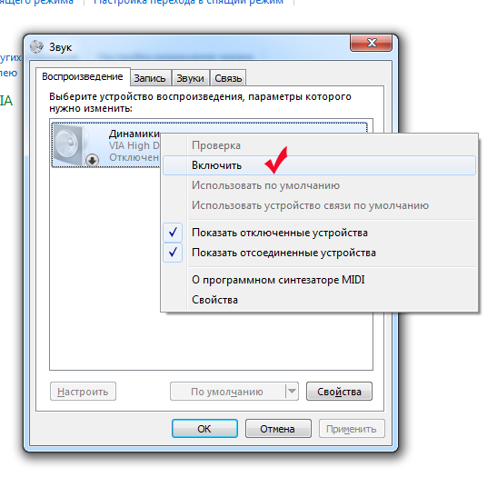 Если да, то при переходе к контекстному меню нужно нажать «Активировать»». Положительным критерием является появление изображения громкоговорителя в лотке