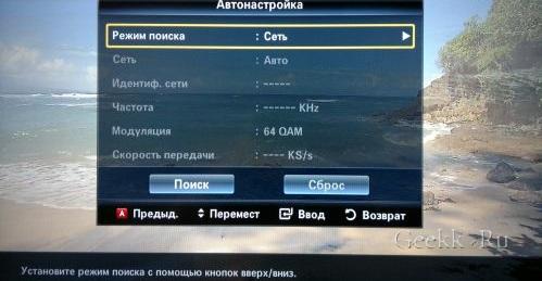 Настройка цифровых Канал на телевизоре Samsung выглядит следующим образом: