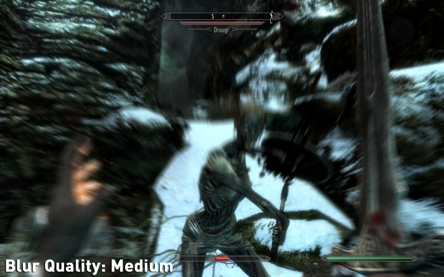 Качество радиального размытия: Этот параметр регулирует степень видимости эффекта радиального дрожания (размытия), который часто проявляется, когда нужно имитировать дезориентацию и боль при промахе атак в бою. Она называется «радиальной» (radial), потому что, так сказать, отклонения по кругу от центра экрана дрожат и расплываются. Для этого эффекта есть три варианта (уровня): низкий (low), средний (medium) и высокий (high). Как показывает практика, существенной разницы между этими тремя уровнями нет.