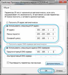 В поле «IP-адрес» введите значение, отличающееся от IP-адреса маршрутизатора на единицу. В большинстве маршрутизаторов производитель по умолчанию установил адрес 192.168.0.1 (вы можете увидеть это в инструкции к маршрутизатору), поэтому IP-адрес нашего компьютера будет 192.168.0.2. Введите соответствующую маску подсети. Закройте все окна, нажав кнопку OK.