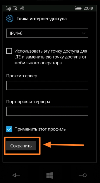 Как правильно определить точку доступа при настройке Интернет на Windows Phone 8?