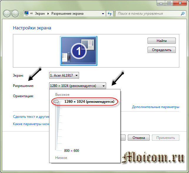 Настройка разрешения экрана