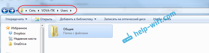 После этих действий появится общий доступ к этой папке со всех компьютеров в сети. Он начинает работать без перезагрузки, проверено. Мы открываем эту папку с другого компьютера: эти настройки Они все испортили, когда ты появился. Это было как-то возможно