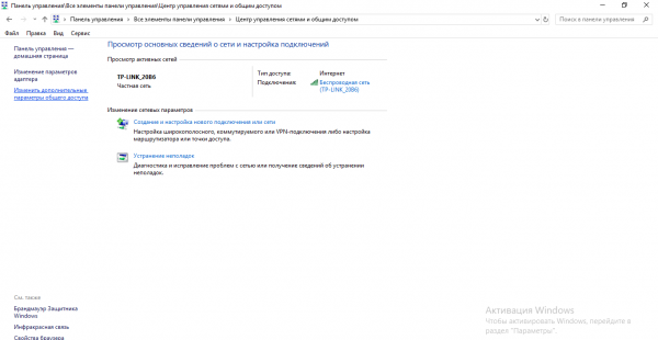 Перейдите в раздел «Сеть и Центр тотального контроля доступа».