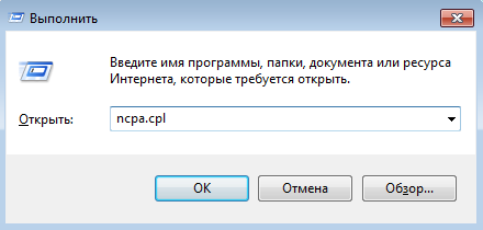- Нажимаем на клавиатуре Win + R и выбираем NCPA. Давайте войдем в окно CPL.