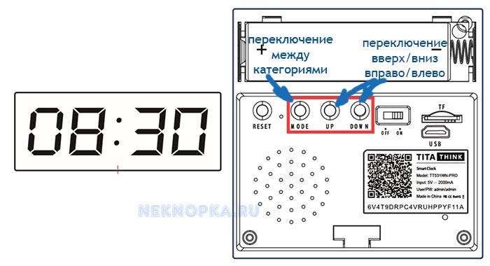 - Время на будильнике устанавливается таким же образом: Выбор режима, настройка оставшихся кнопок.