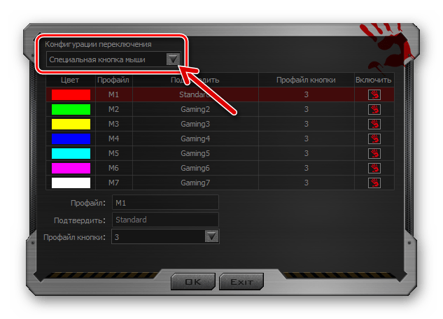 Важно отметить, что данные по выбранным настройках режимы хранятся во встроенной памяти манипулятора. Таким образом, любые изменения, внесенные пользователем (включая функции элементов управления и макросов), останутся в силе при подключении мыши к другому компьютеру — независимо от того, установлена ли утилита bloody или нет.