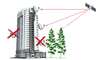 Необходимо придерживаться следующих правил: неторопливая проверка в южном направлении, так как спутник находится почти на юге. Место должно быть выбрано таким образом, чтобы не было серьезных препятствий для передачи сигнала в направлении спутника: Высотные здания, деревья и т.д. Сигнал не проходит через листву деревьев, ветки, оконное стекло и т.д. Не обязательно, чтобы окна вашей квартиры или частного дома выходили строго на юг, важно, чтобы они были видны в одном из окон (для некоторых спутников на юго-западе или юго-востоке). Если южное направление не видно из окон, антенна устанавливается на крыше.