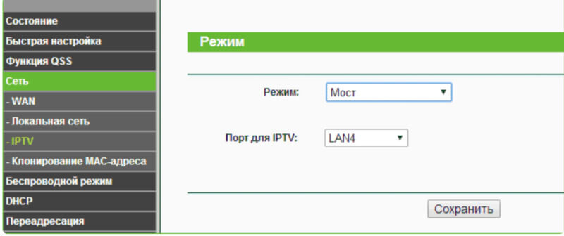 После производства настройка роутера TP-Link в Ростелекоме вы можете настроить Телевидение IPTV Ростелеком. Для этого откройте запись «Сеть» — «IPTV», выберите режим «Мост» и в поле PORTV PORTV введите номер порта локальной сети, к которому подключена приставка. Следовательно, вы должны сохранить настройки .