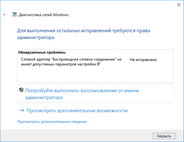 Часто проблема возникает у пользователей Windows 7 — Это происходит, когда есть проблемы с доступом в интернет и диагностическим инструментом сетей Дает сообщение о что сетевой адаптер Нет допустимого параметра настройки IP.