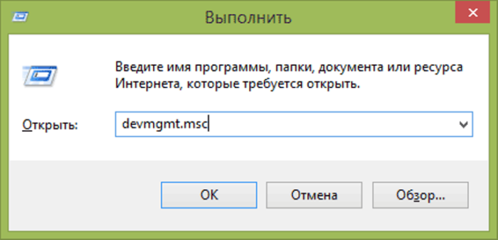 - Затем открывается «Диспетчер устройств» через окно «Выполнить» (нажатием клавиш «Win + R»), в котором вводится и набирается команда#171;devmgmt.msc»