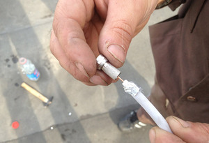 Мы исправляем это на нашем антенне то есть на трубке, в которой находится конвертер, и аккуратно складывается антенну Правая сторона / левая сторона с помощью этого инструмента.