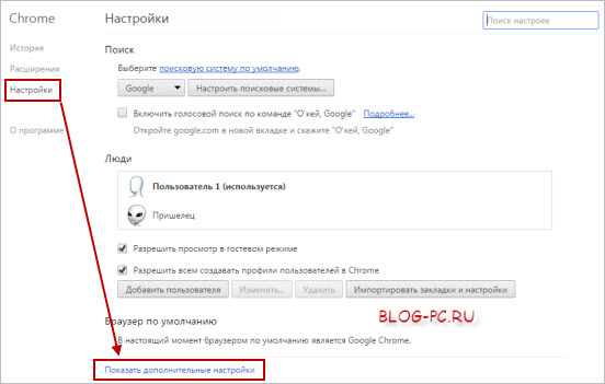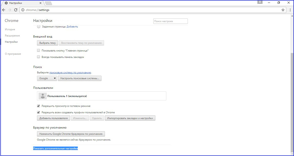 Прокрутите список настроек до самого низа и нажмите Показать расширенные. настройки :