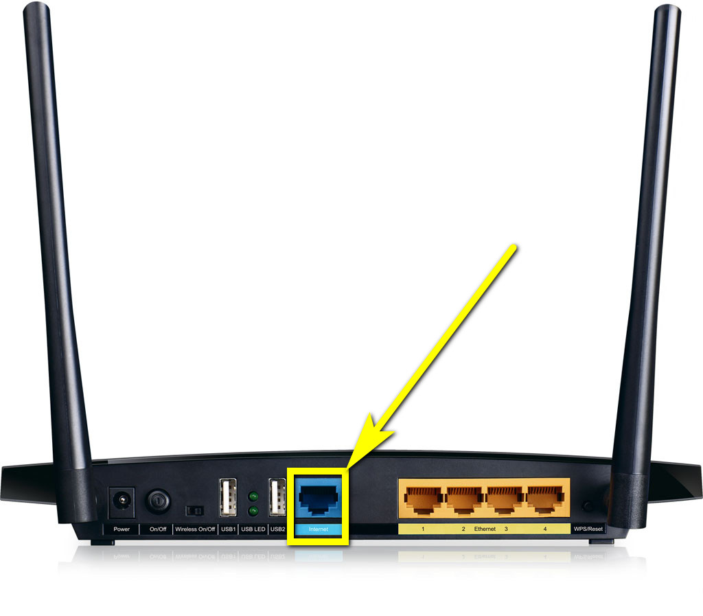 Настройка роутера Это невозможно без надлежащего подключения кабеля от интернет-провайдера Разъем для подключения кабелей такого типа обычно расположен на задней панели Такой разъем отличается по цвету и может иметь либо обозначение ④-, либо обозначение Internet