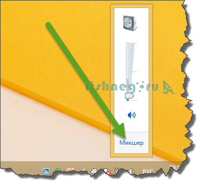 В общем, попасть туда очень просто, можно нажать на значок динамика рядом с часами в правом нижнем углу и выбрать там громкость …
