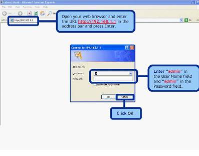 После успешного завершения этого процесса можно переключиться на веб-интерфейс для запуска настройки: Введите 192.168.1.1 в адресную строку браузера (для модема D-LinkDSL-2500UBRU):