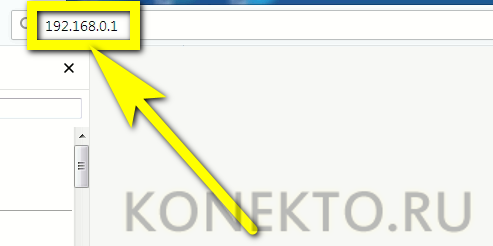 - Введите IP-адрес по умолчанию 192.168.0.1 в адресной строке браузера и нажмите ❶ Если ничего не происходит, необходимо найти правильный адрес, который приведет вас в «Настройки» роутера, В корпусе устройства, в заводской упаковке или в инструкции.