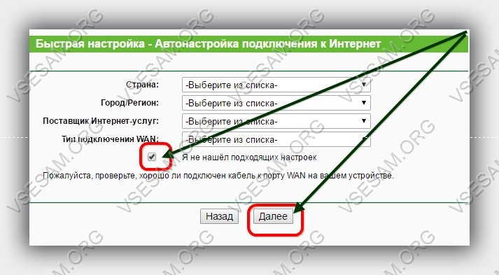 После этого вы попадете в главное меню роутера TP-Link TL-WR720N. Сразу хочу отметить, что все на русском языке и даже \u200b\u200bdчто есть сертификат, что редкость. Мы должны спешить настройку роутера Быстро налево за ним. Выберите настройка и жмем Далее.