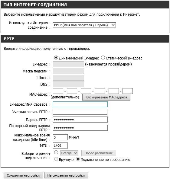 - Имя пользователя PPP и пароль PPP логин и пароль.