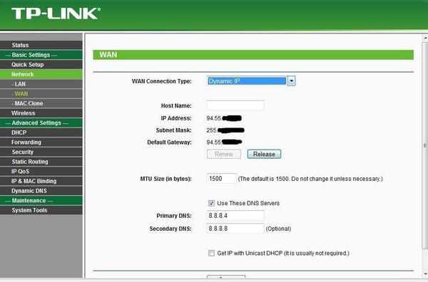 После этого переходим на вкладку WAN. Здесь вам нужно понять, как получить IP-адрес от вашего провайдера. Выше мы объяснили, как просмотреть параметры сетевого подключения в Windows. Если точки на “в настройках; автоматически”, то включите DHCP на WLAN роутере, как на рисунке: