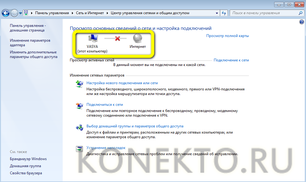 - Убедиться в отсутствии соединения можно, нажав на ссылку» Подключиться к сети» — система сразу же выведет сообщение о текущем состоянии.