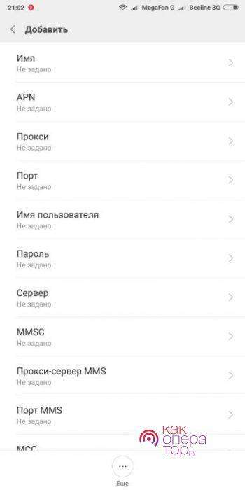 - Этот этап зависит от типа устройства. В некоторых случаях Ie нужно найти «точку доступа (APN)», в других — необходимые настройки .