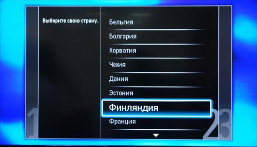 - Теперь вам предлагается выбрать страну. Одна из стран Западной Европы лучше зарекомендовала себя, например, Германия или Финляндия. Если вам предлагают только Россию или Украину, вам придется обратиться к специалистам, которые помогут вам установить на телевизор более современное программное обеспечение;