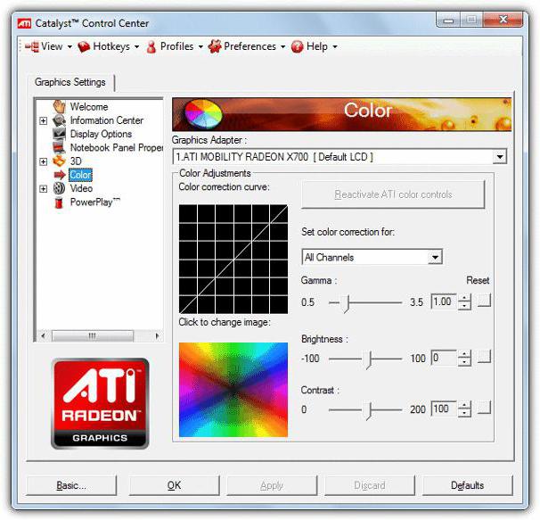 Аналогичным образом, экраны могут быть настроены по-разному в зависимости от установленной видеокарты. Производители обычно поставляют для них специальные утилиты. настройки Уже установлены, поэтому калибровку цвета лучше проводить с их помощью. Это также утилиты, позволяющие изменять параметры для обычного режима работы или для игры в компьютерные игры. Общие сведения, доступ к настройкам Цвет и другие параметры выполняются из вызываемого меню при нажатии на значок адаптера на панели задач. И я должен сказать, что они могут выполнять установку автоматически.