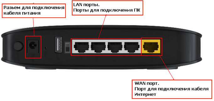 - Провод от Wi-Fi к компьютеру, а также к любому порту под названием Lan.