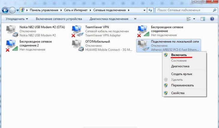 Если соответствующий значок не отображается, проблема, скорее всего, заключается в том, что сетевая карта отключена. Другой причиной отсутствия значка сетевого подключения является отсутствие правильных драйверов. Заходим в «Панель управления \ Сеть и Интернет \ Сетевые подключения» и проверяем видимость нашей сетевой карты. Если вы видите сетевую карту, но она просто отключена, ее необходимо включить. Для этого щелкните по нему правой кнопкой мыши и выберите «Включить». Если сетевая карта не видна, вам потребуется установить Совместимые драйверы. Для этого необходим жесткий диск, который должен быть в комплекте с маршрутизатором. Если такого жесткого диска нет, мы загружаем необходимые драйверы из Интернета.