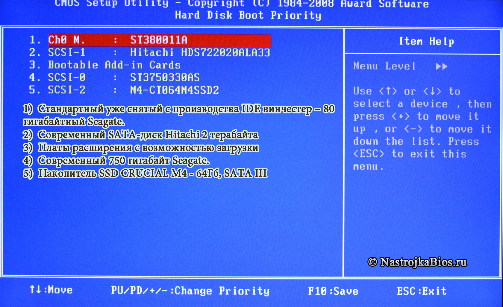 - Драйверы жестких дисков — Установка приоритетного жесткого диска, если их несколько.