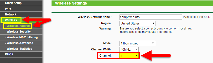В веб-интерфейсе маршрутизатора перейдите в раздел« wireless settings»: