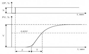 Где: x — значение изменения начального воздействия (в %); Y — значение изменения изменяемого процесса (в % от шкалы); KP — коэффициент усиления процесса; D — время задержки реакции процесса (в минутах); T — временная постоянная процесса (в минутах); E — временная постоянная замкнутого Минимально возможное время, в течение которого регулируется регулятор Из этого можно вывести значение переменной процесса для данной задачи.