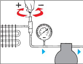 Затем регулятор KVD настраивается на давление В приемнике, например, для давление Приемник имел примерно в 1 раз меньше давления испарение. Это настройка Выполняется с помощью манометров. Рекомендуется корректировка в холодную погоду.