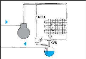 Это делается, если холодильник оснащен регуляторами КВР и НРД. НРД вызывает зазор обратного клапана давления Между конденсатором и приемником. Его значение колеблется от 1,4 до 3 раз, в то время как индикатор. давления В приемнике меньше, чем в конденсаторе.