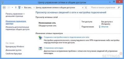 Примечание: Попасть в Центр управления сетями и получить полный доступ в Windows 8 можно и другим способом — Для этого нажимаем на значок сети на панели задач — дерево — Которое находится в правом нижнем углу экрана, рядом с часами Теперь в меню справа ищем ссылку на изменение параметров адаптера: