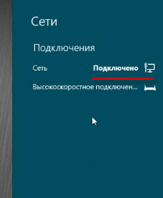 Соединение установлено. Чтобы воспользоваться им, щелкните левой кнопкой мыши значок сети в информационном окне. В результате этих действий в левой части экрана отображается меню доступных соединений.