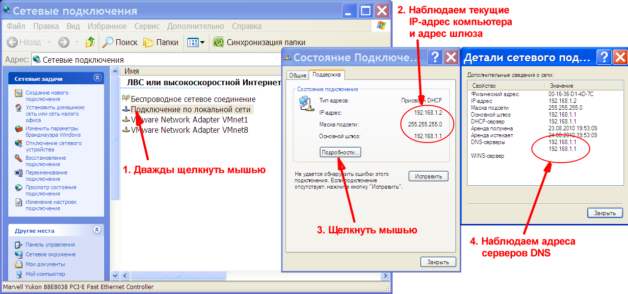 - Шлюз по умолчанию — это адрес шлюза провайдера, к которому подключен ваш модем.