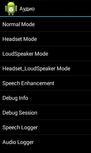 Чаще всего в инженерном меню Настройте звук. Чтобы сделать это в манифесте меню Выберите «Аудио».