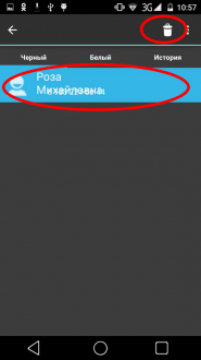 Чтобы удалить номер из черного цвета списка , выберите его и нажмите на значок корзины в правом верхнем углу экрана.