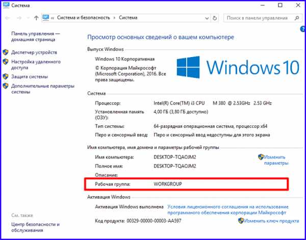 В открывшемся окне, между именем хоста в сети и его описанием, вы также найдете поле «Рабочая группа», рядом с которым отображается активное рабочее пространство.